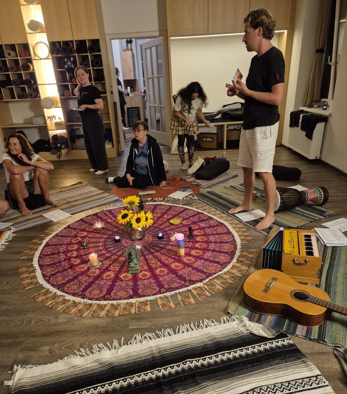 In unserem Mantrasingkreis erwartet dich ein liebevoller, geschützter Ort, in dem jede Stimme willkommen ist. Wir begleiten den Abend lang unsere und eure Stimmen mit dem Harmonium, Gitarre und Trommeln. Dabei teilen wir auch kleine Geschichten über die Mantras, deren Herkunft und Wissenswertes über die indische Kultur mit ihren Gottheiten.